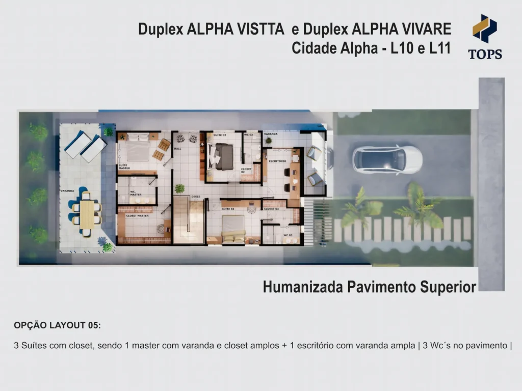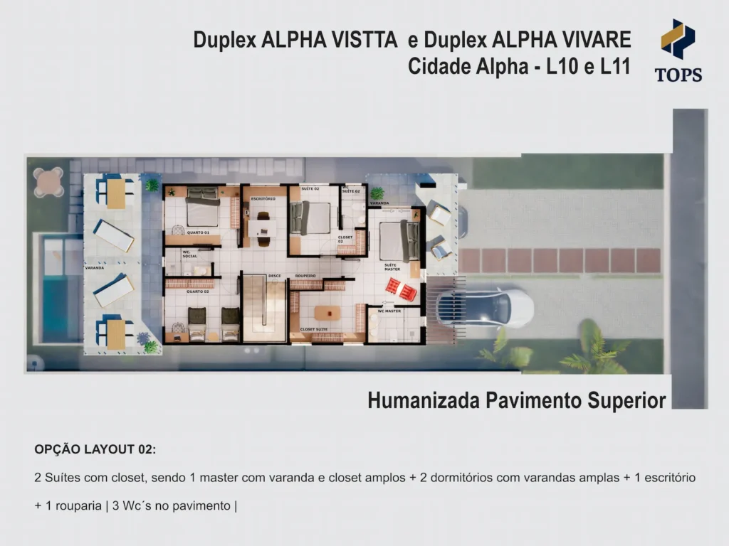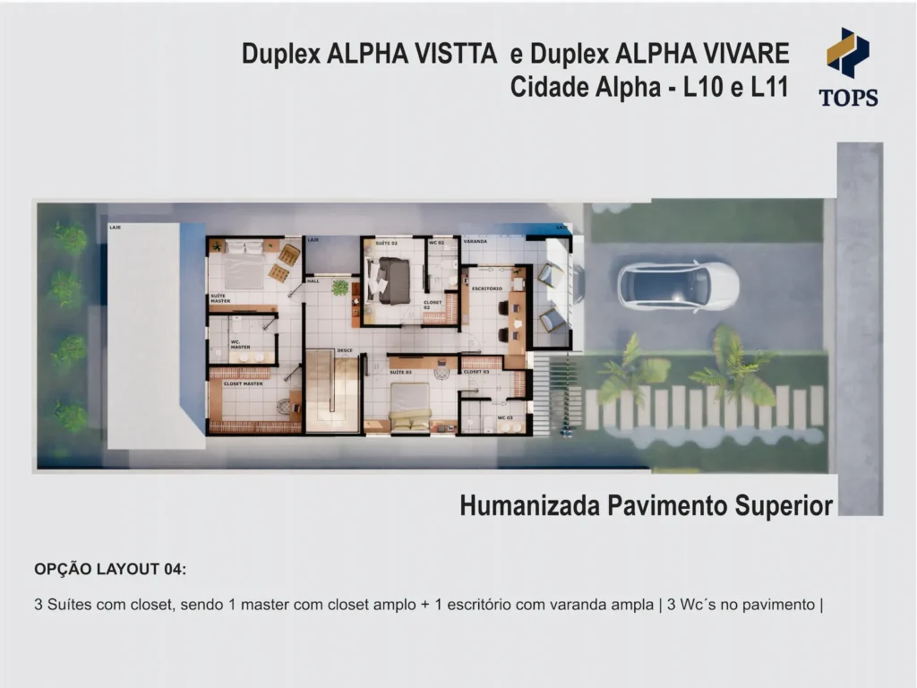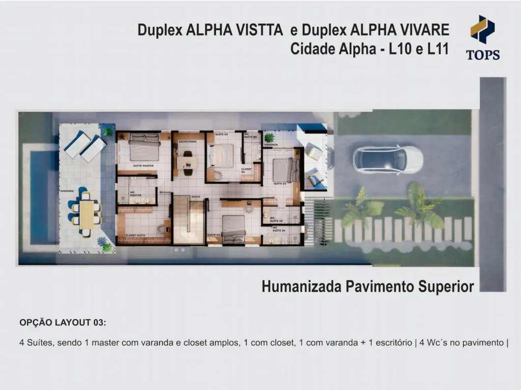 Pav. Superior Layout 2: 2 Varandas | 4 Suítes | 4 Wc | 1 gabinete